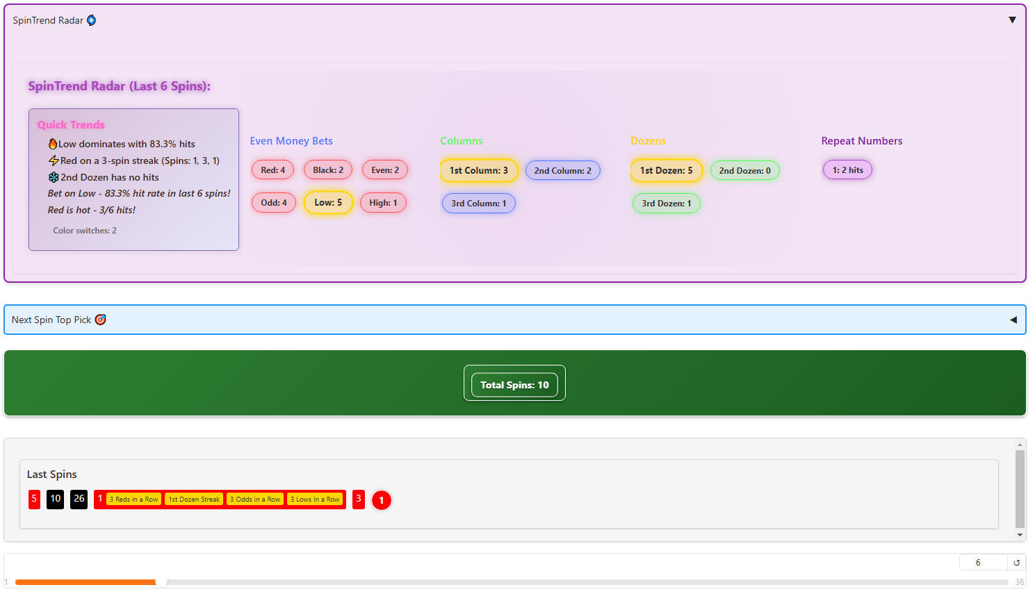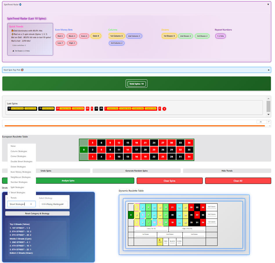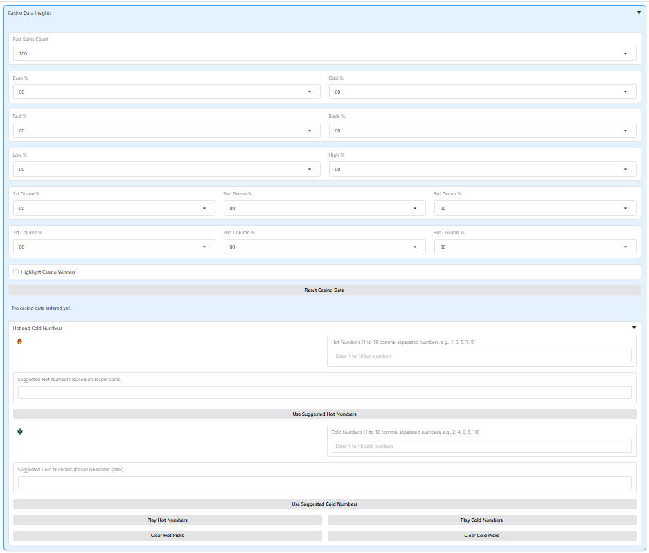 Track and analyze roulette spins to uncover trends, hot/cold numbers, and potential biases with real-time insights.
