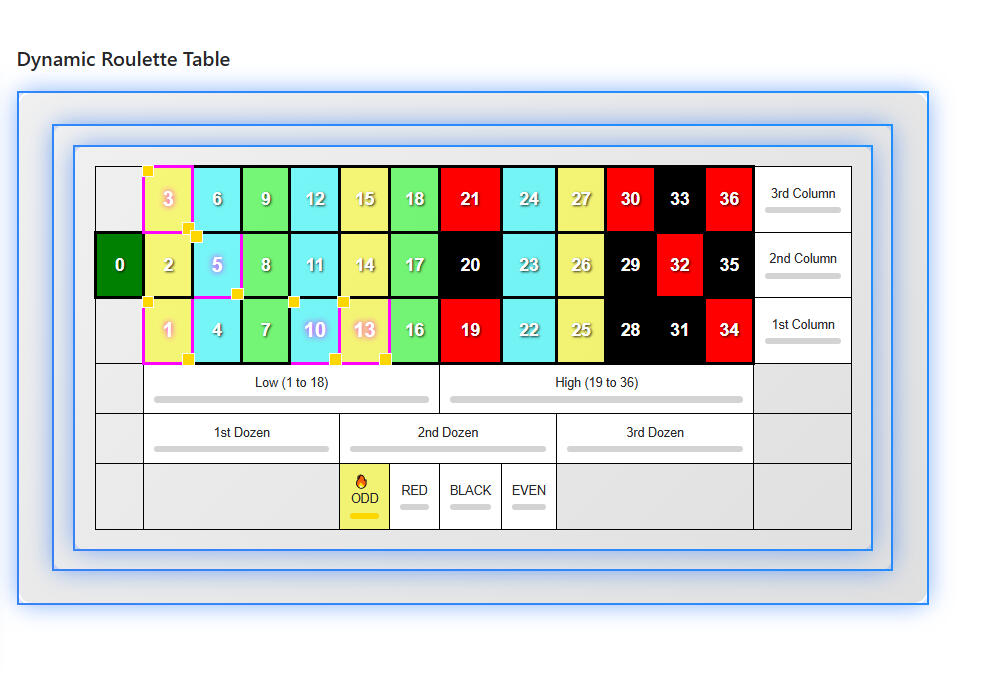 Visualize your data with a customizable table that highlights key numbers and bets based on your chosen strategy.